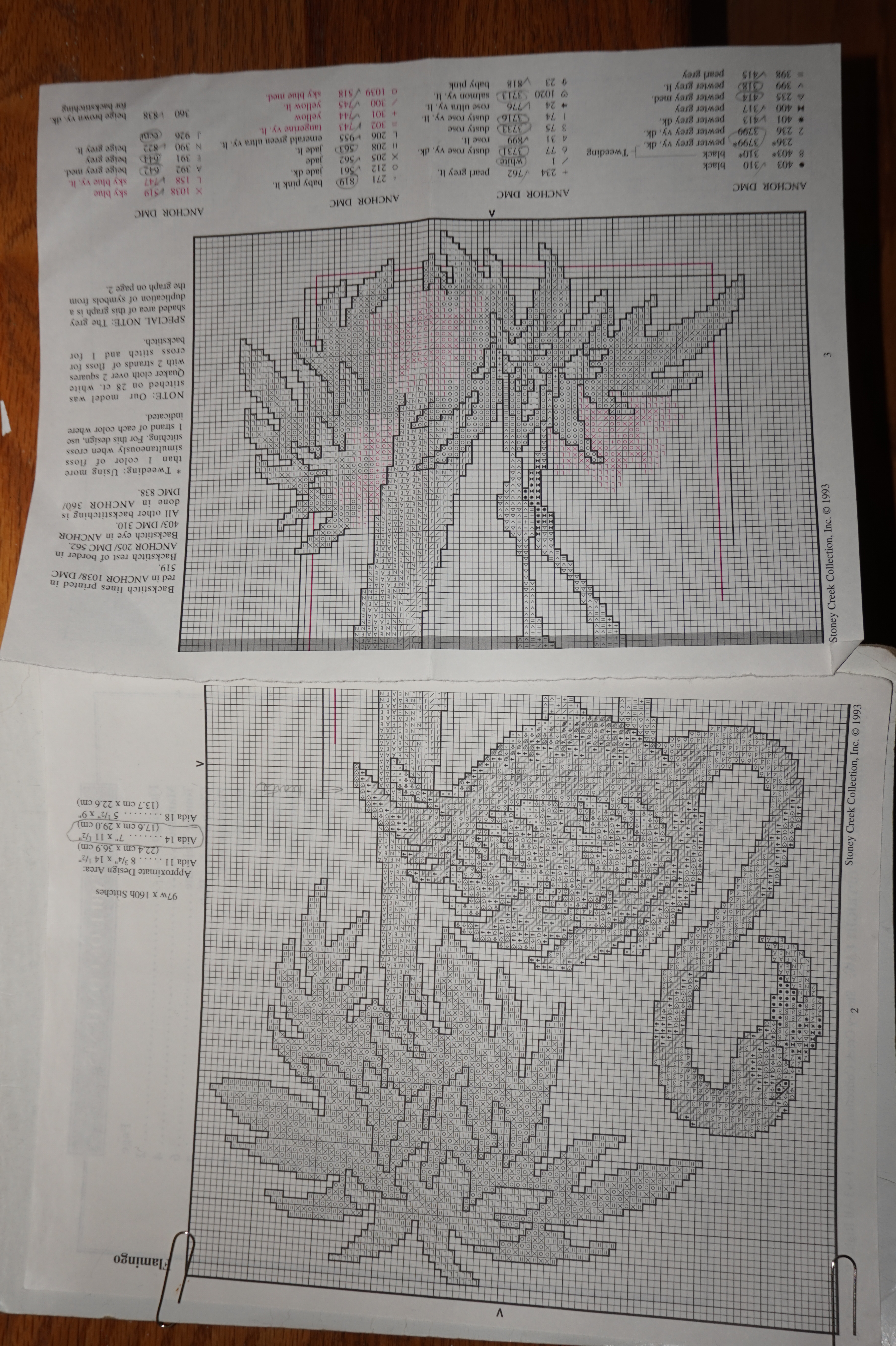 Most of my current patterns are easier to read. These new projects have colored charts with symbols and they are much easier to work with. Not to mention all the colors used with the ugly flamingo are very close together, so it is hard to see what you are doing.